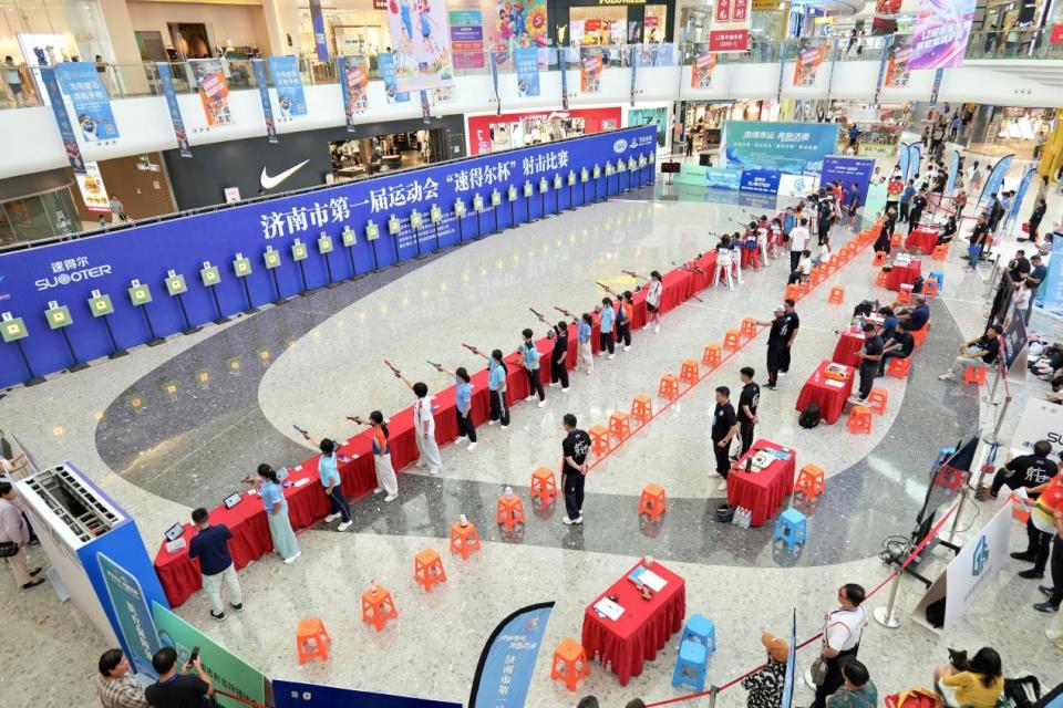 济南广电·天下泉城客户端8月16日讯 8月15日,济南市第一届运动会“速得尔杯”射击比赛在济南融创茂正式开赛。作为展现全市青少年射击运动水平的重要赛事,本次比赛吸引了来自全市13个区县(功能区)的458名青少年选手参赛。选手们凭借精准的枪法和沉稳的心态展开激烈角逐,充分彰显了“少年强则体育强”的精神内涵。原本充满商业氛围的商场,因这场赛事变身成为独特的“赛场”,电子枪上膛的清脆声响与靶心十环的醒目光芒交相辉映,迅速点燃了整座城市的运动热情。