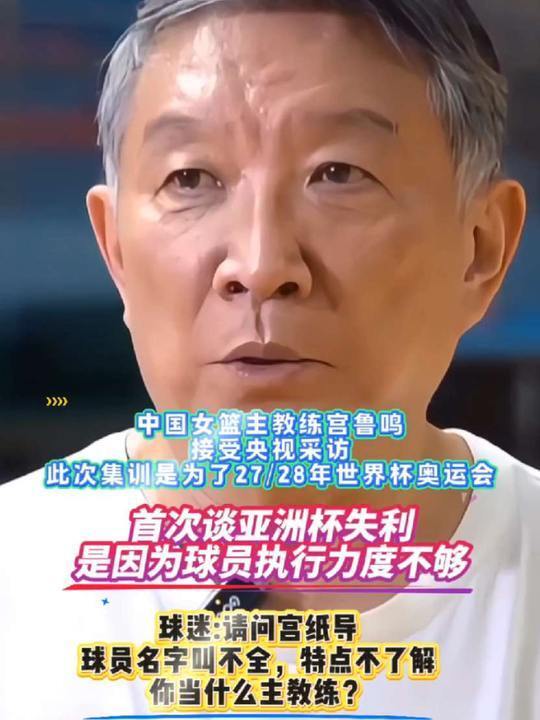 中国女篮主教练宫鲁鸣近期在接受央视采访时坦言,“从接触到现在满打满算不到四个月,队员看到了,有时候我连队员的名字都叫不出来,她们的性格以及能力的运用,包括打大赛的一个心态我们还不是特别清楚 ”,很难想象,这是68岁的中国女篮主帅宫鲁鸣面对央视镜头说出的一句话,感觉就是在推卸责任。